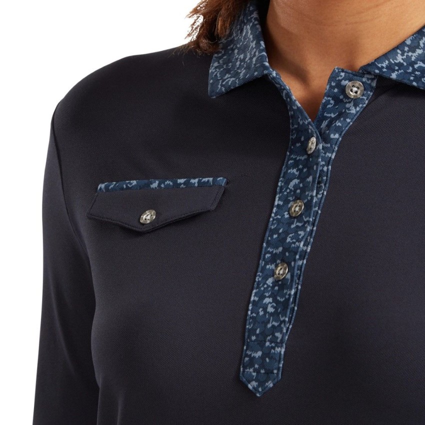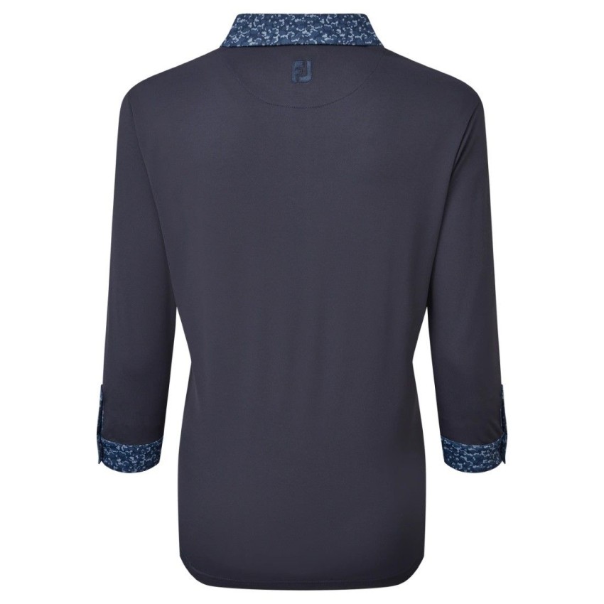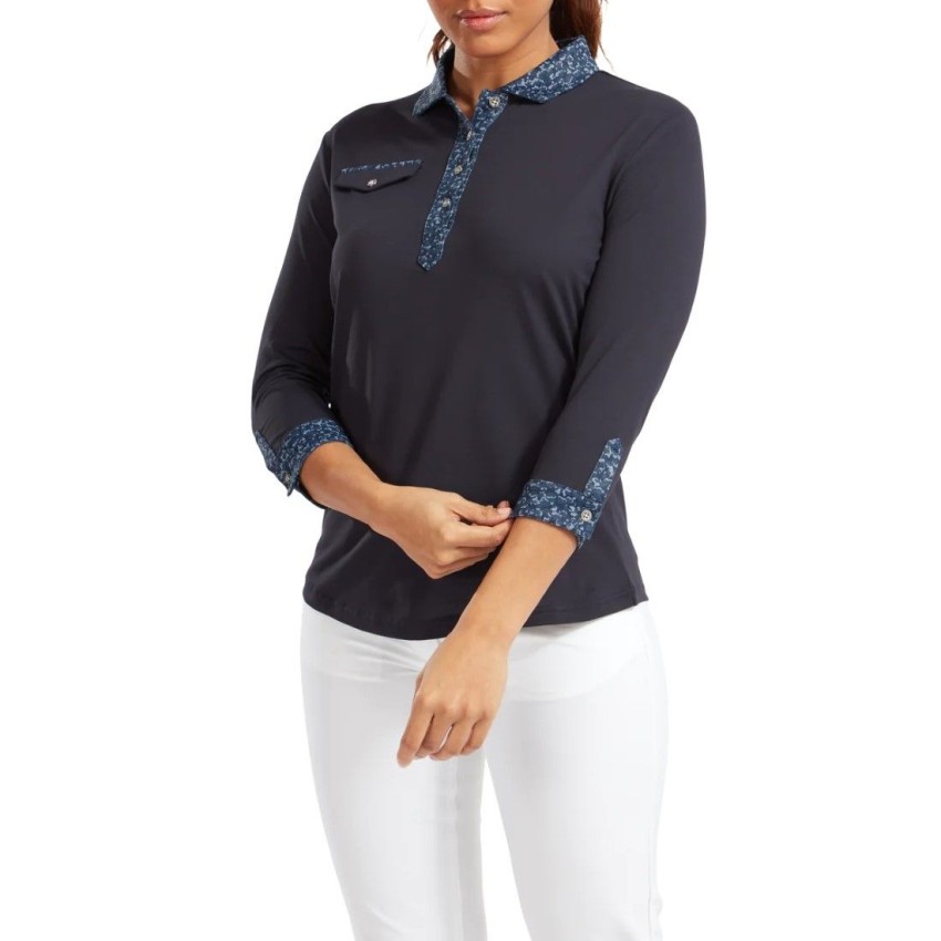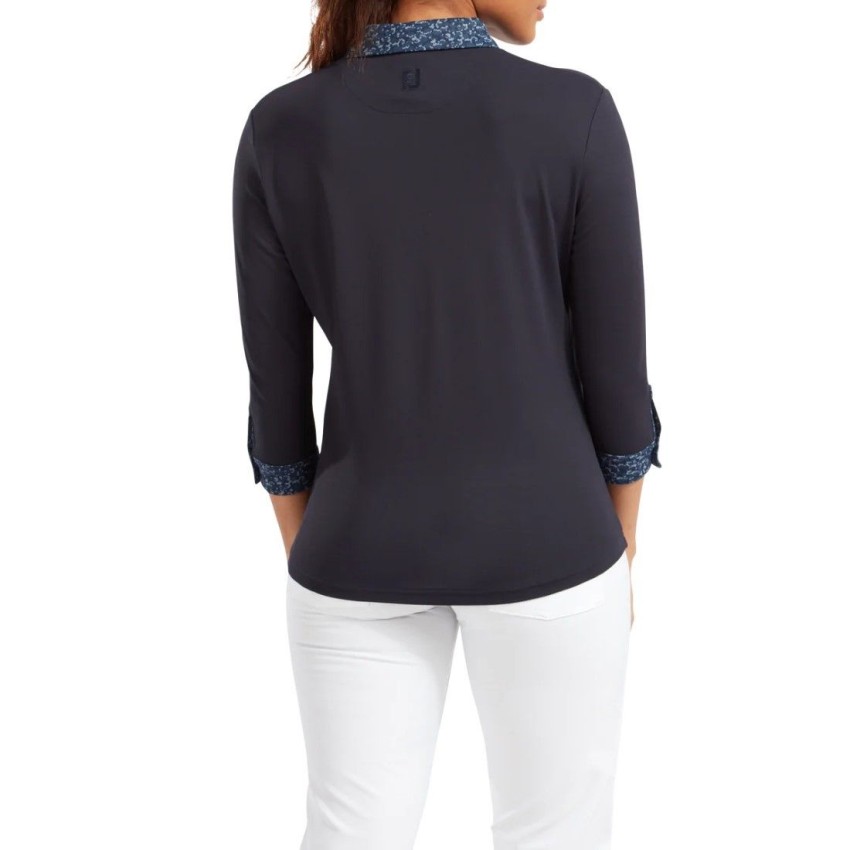 Koszulka golfowa Women's 3/4 Sleeve Pique with Printed Trim marki FootJoy granatowa