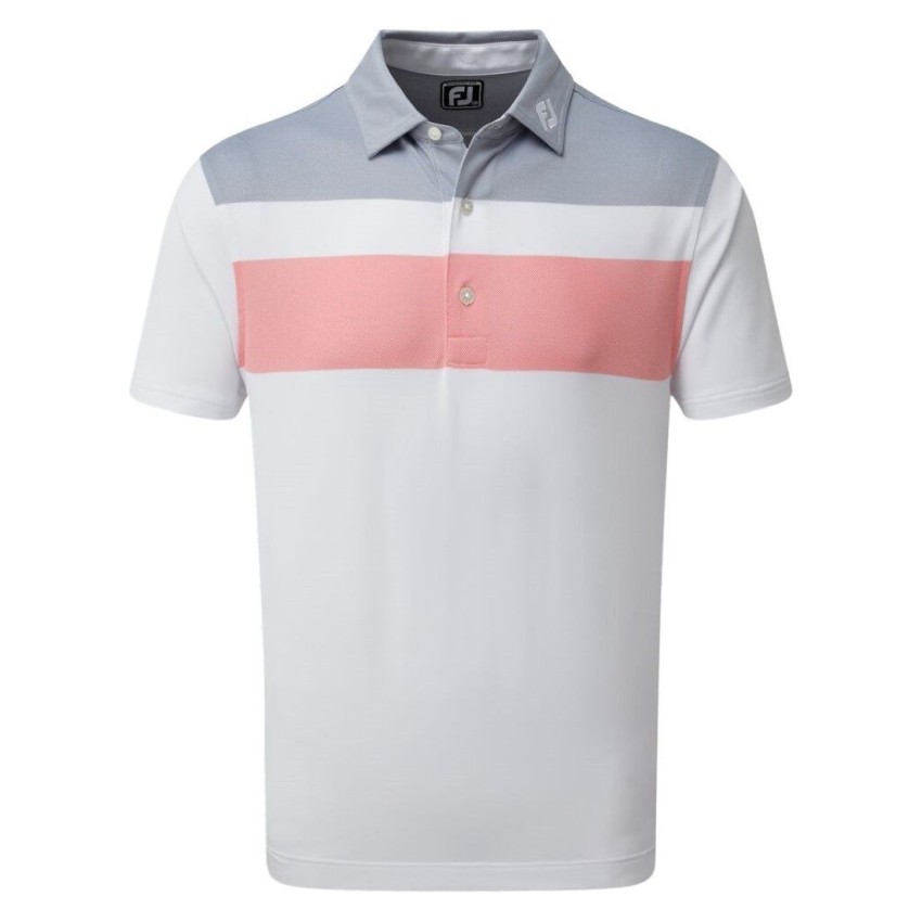 Koszulka golfowa Polo Double Block Birdseye Pique marki FootJoy szaro-różowo-biała