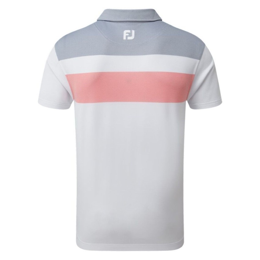Koszulka golfowa FootJoy Double Block Birdseye Pique Polo - szaro-różowo-biała
